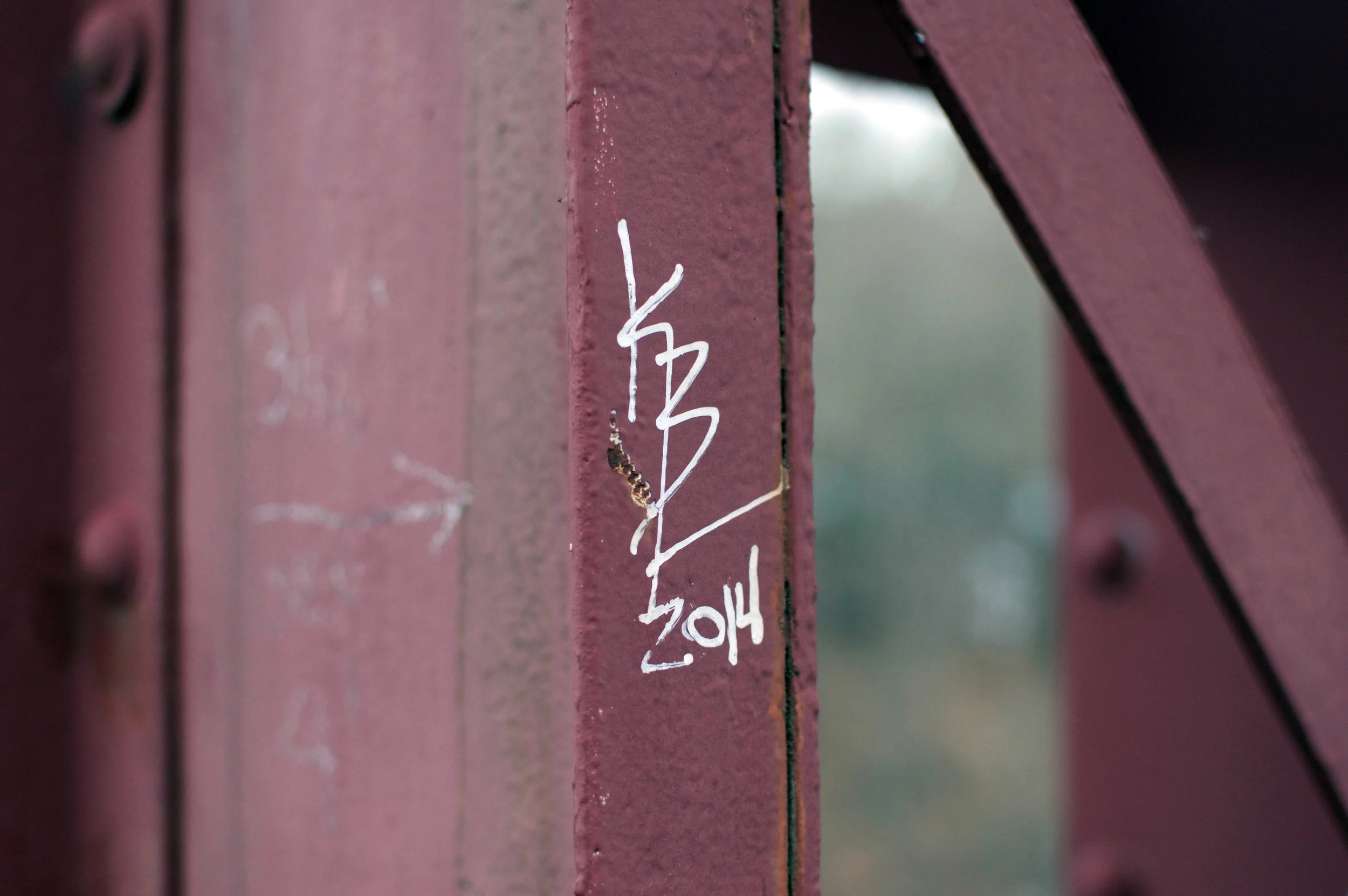 This is the Bardwell's Ferry Bridge. It's an old favorite, one that I've photographed many times over many years - since high school actually, whoa. I'm drawn here, especially when other sites feel tired from appearing too many times in the photo folder. This place seems to always have something. And it fits nicely with the Urban Texture series I've been playing with of late. The tags left by others (are they vandals or artists?) caught my eye on a recent visit. No reassuring message here, just...a mark. Thinking waaaay back to a Drawing II class, there's the idea of a work having a residue - that build-up of charcoal or graphite or crayon many times applied, erased, re-drawn - that gives the drawing depth and character. And substance. Too deep for graffiti? Maybe. But I think the kids who left their marks on these trusses and guardrails gave the bridge that much more character.